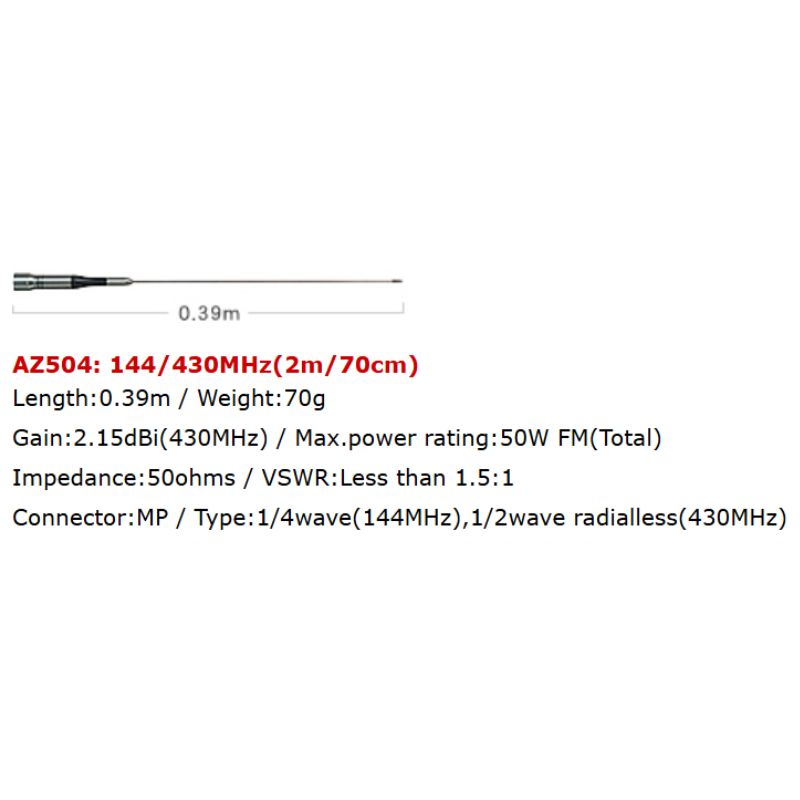 Connector:MP / Type:1/4wave(144MHz),1/2wave radialless(430MHz)