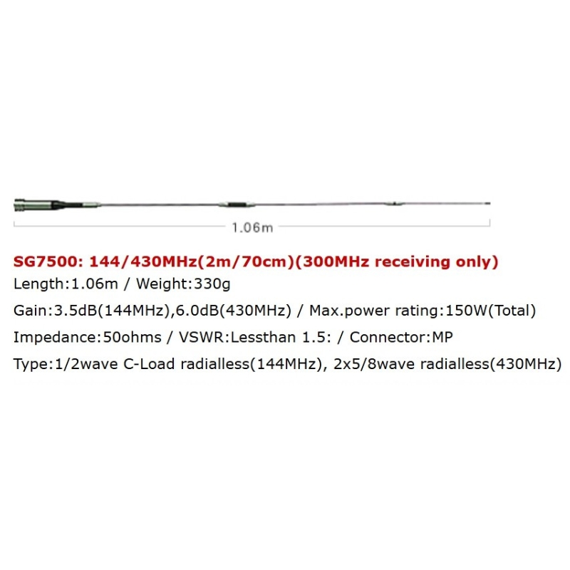 SG7500: 144/430MHz(2m/70cm)(300MHz receiving only)